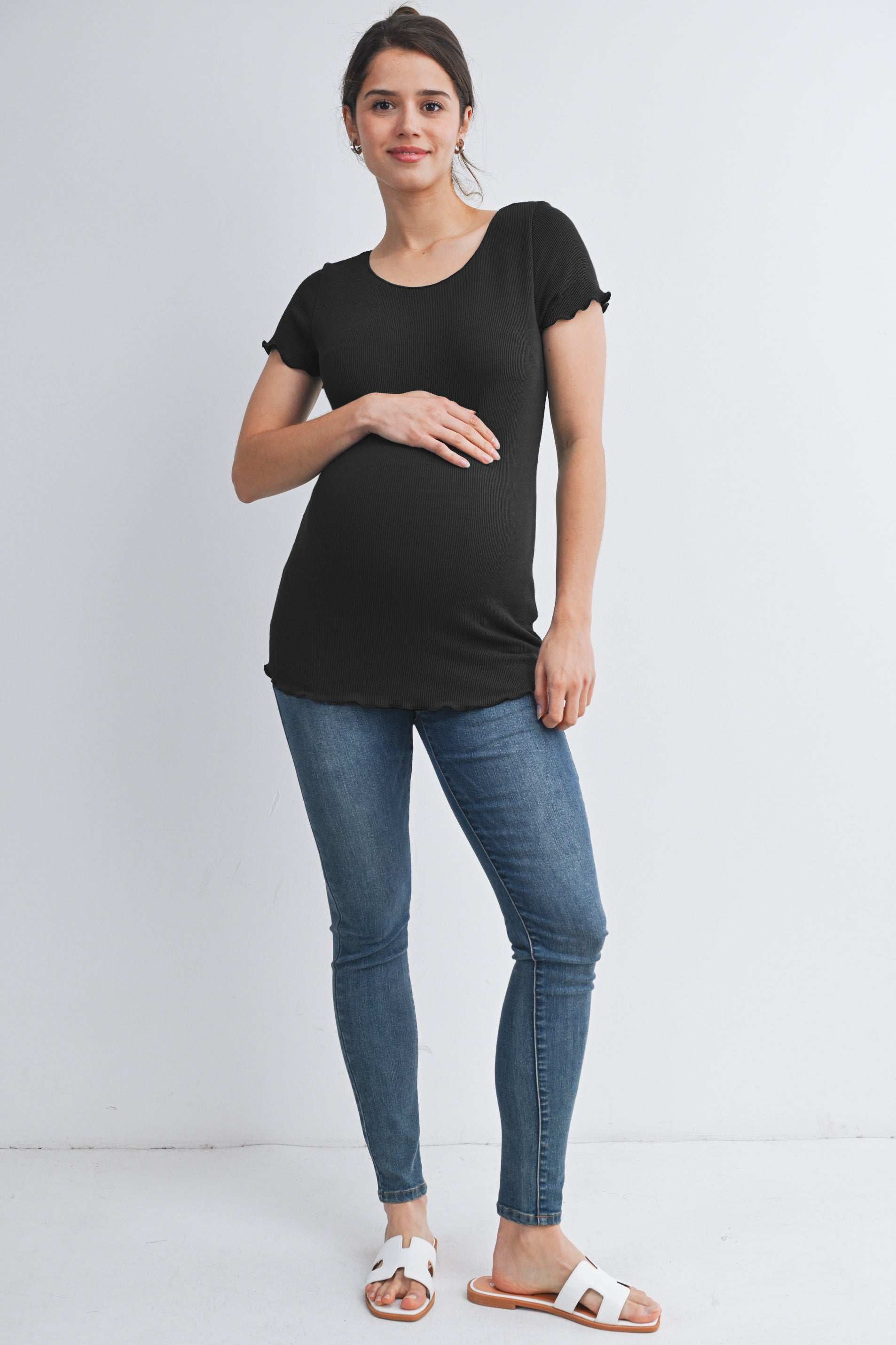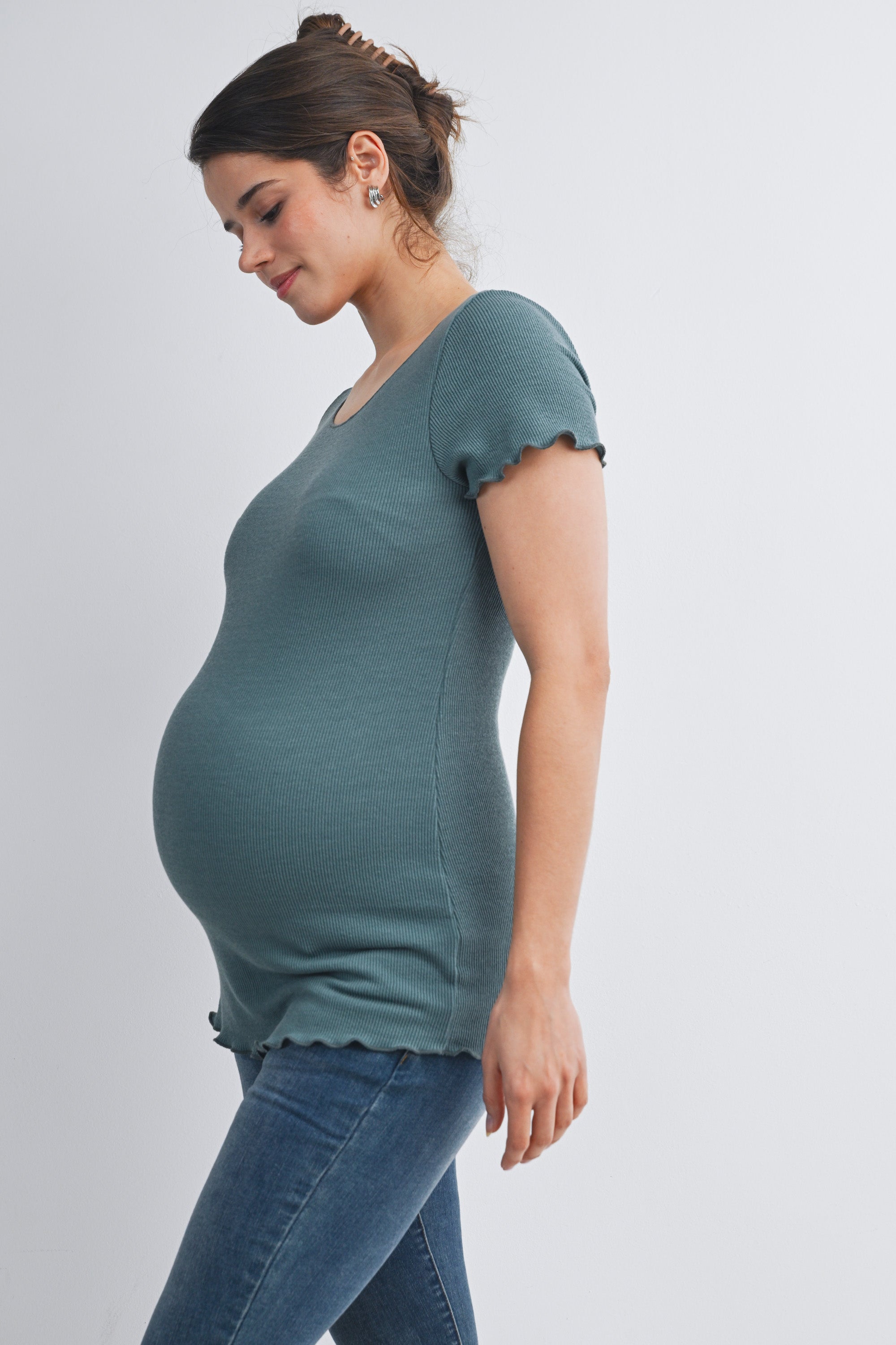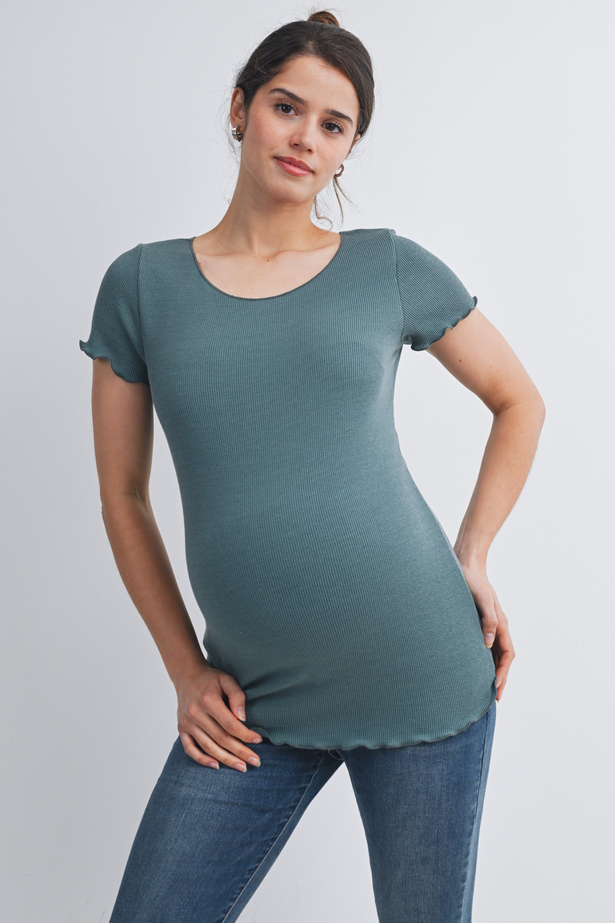 Casual Ribbed Scoop Neck Short Sleeve Maternity Top