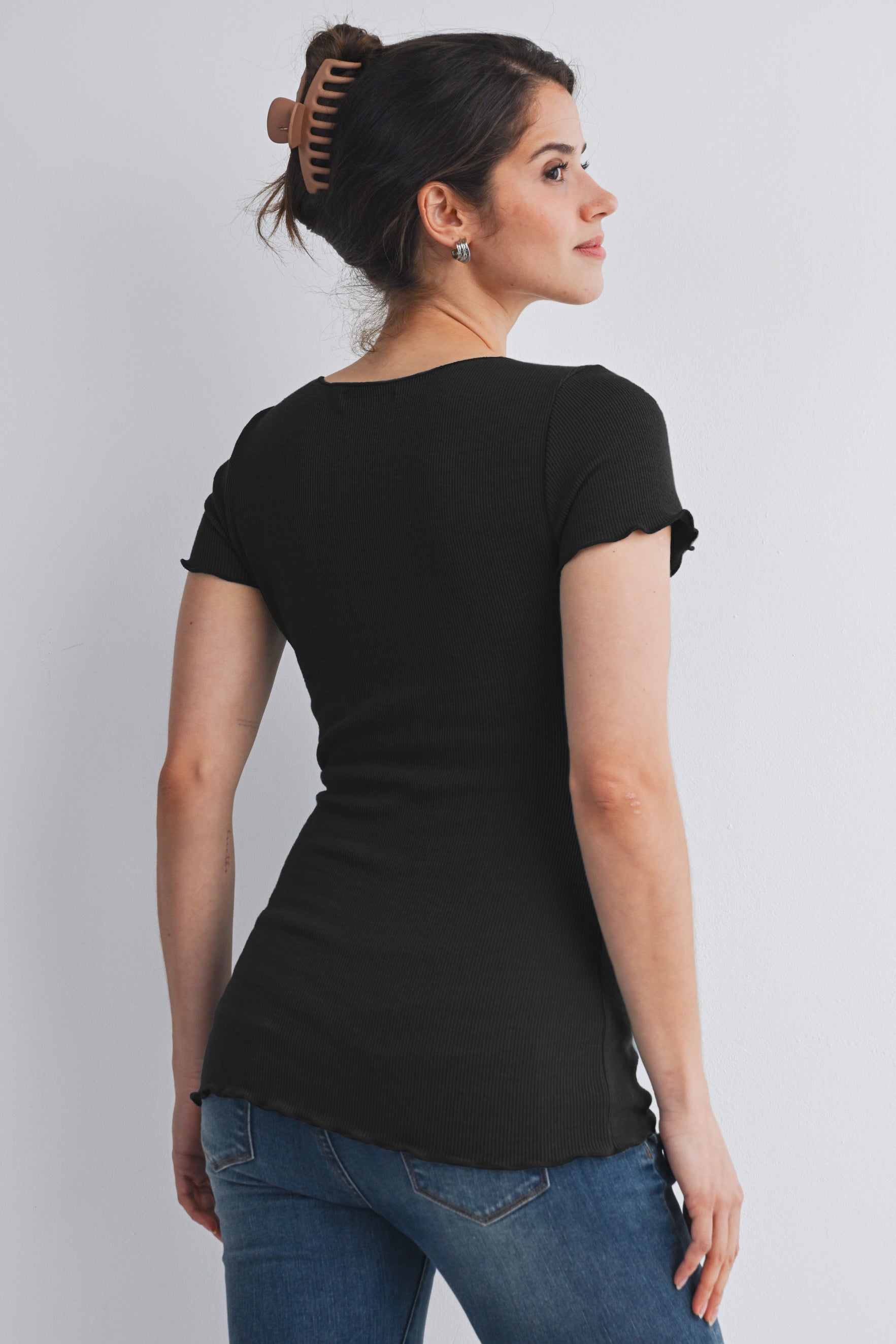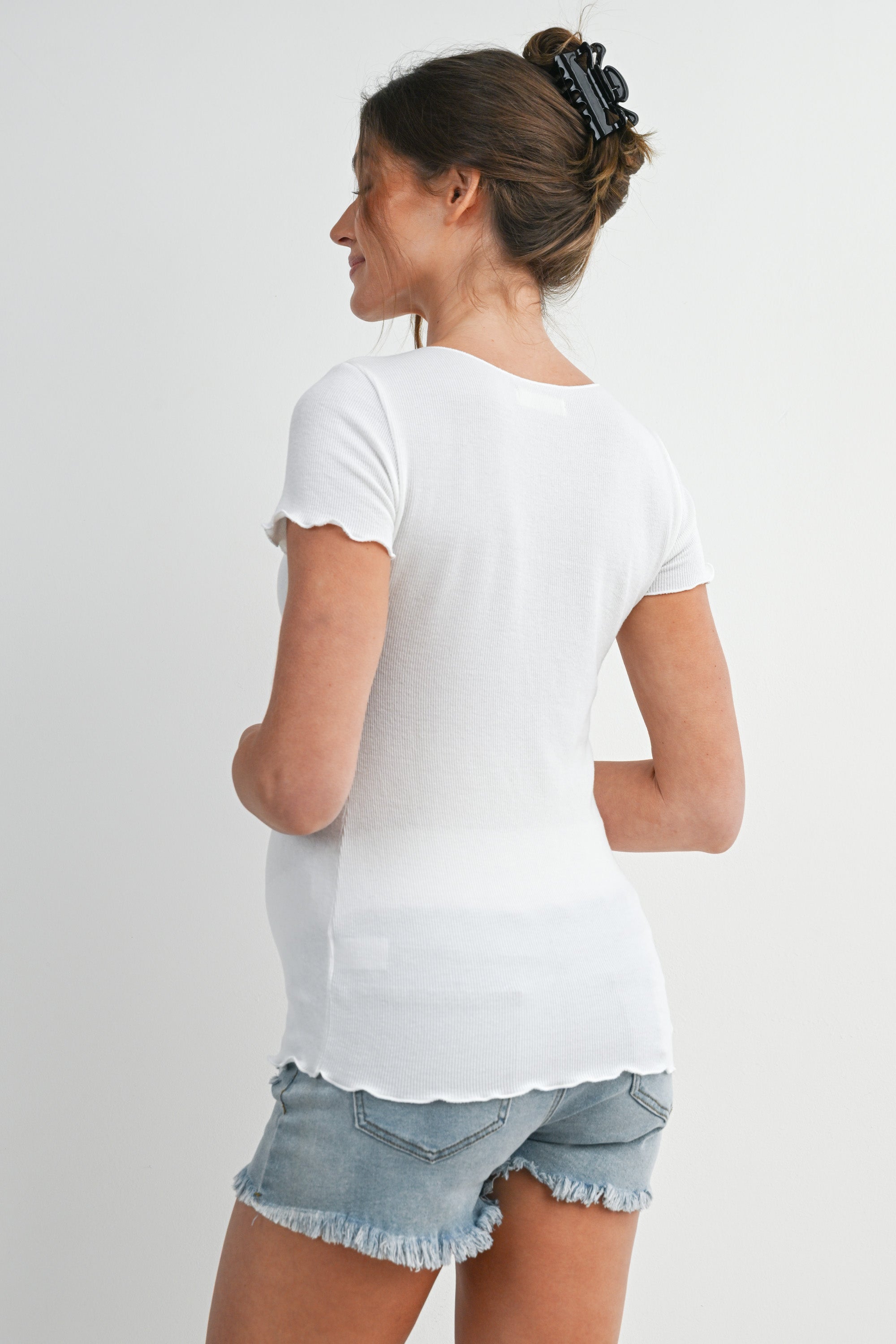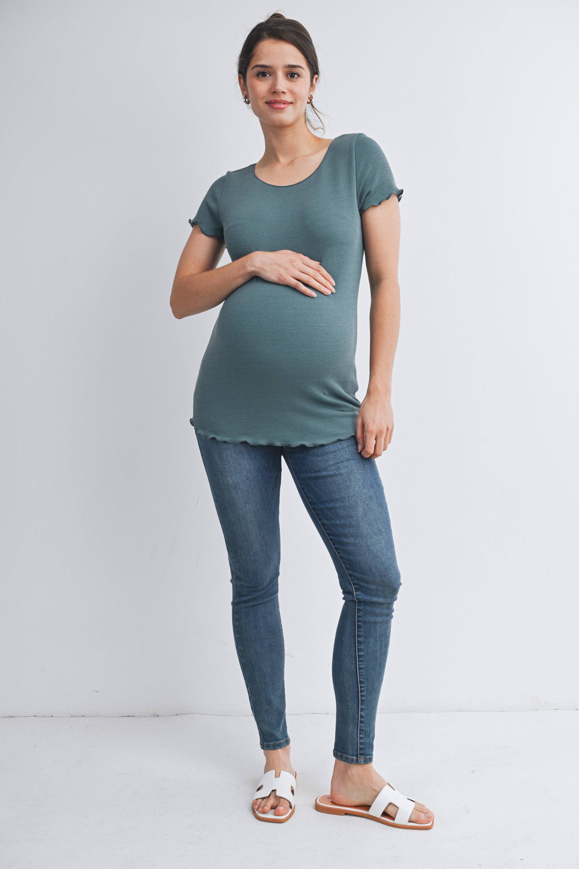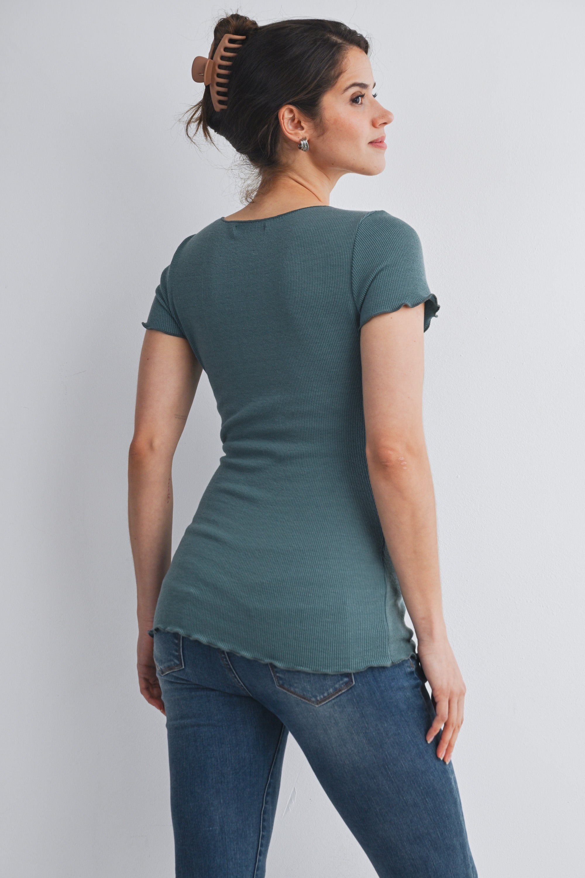 Casual Ribbed Scoop Neck Short Sleeve Maternity Top
