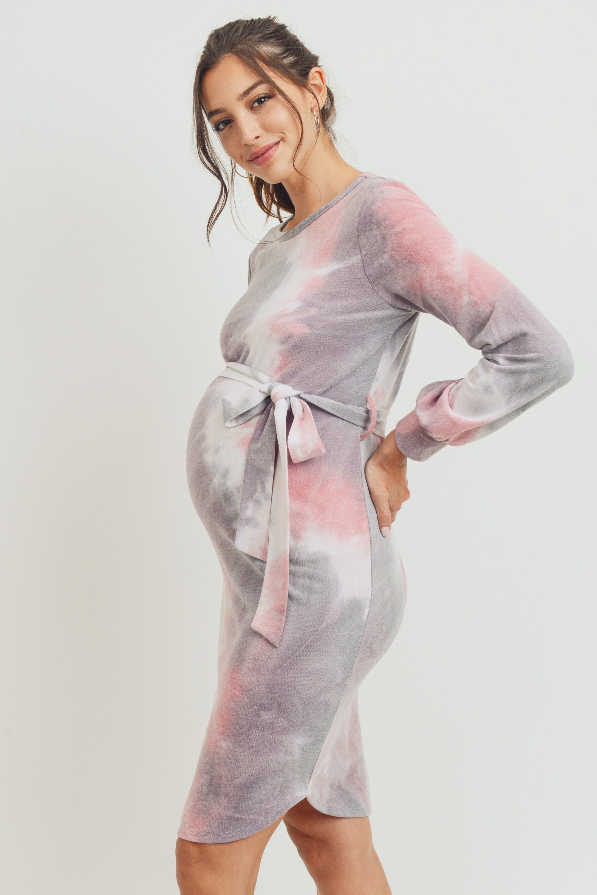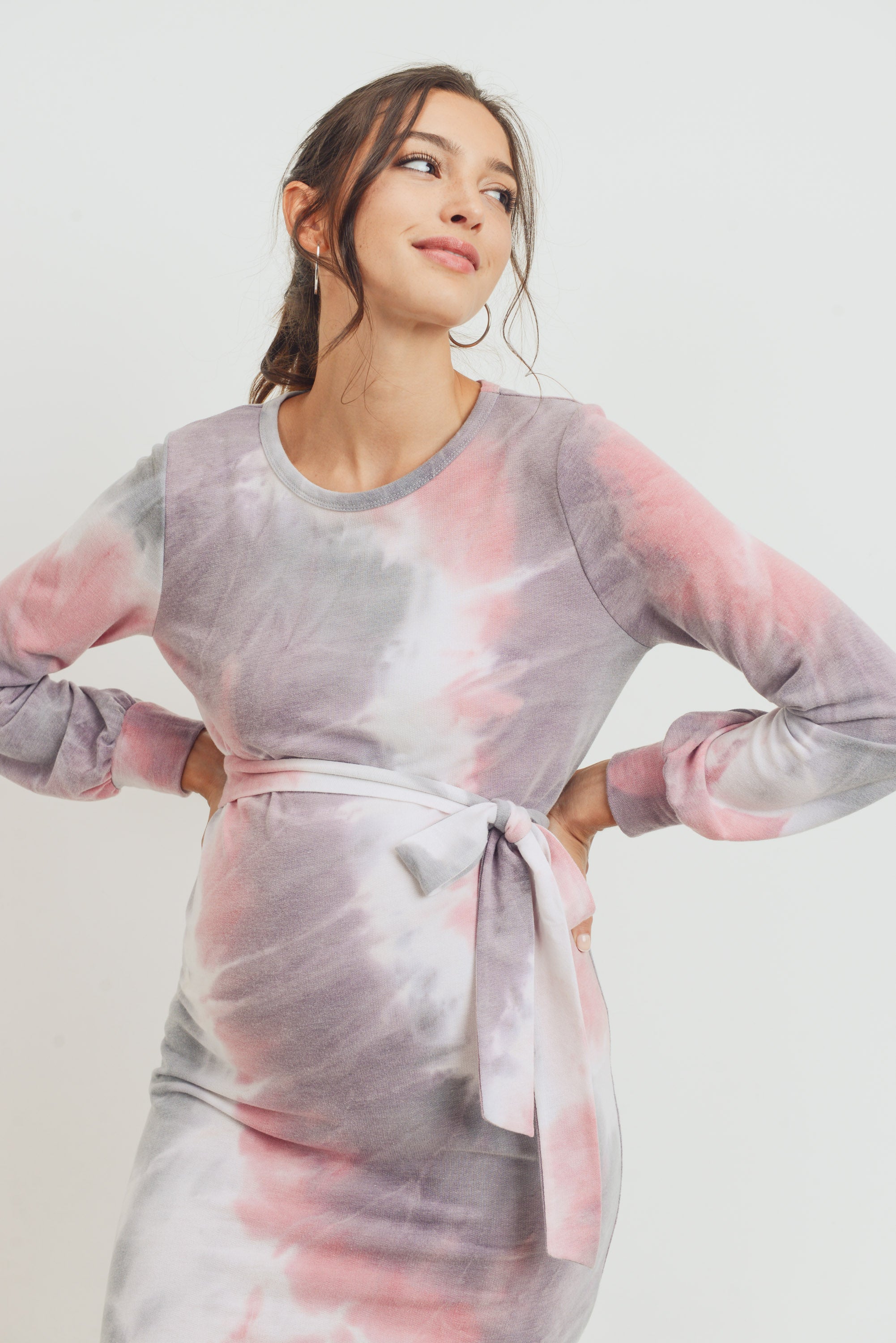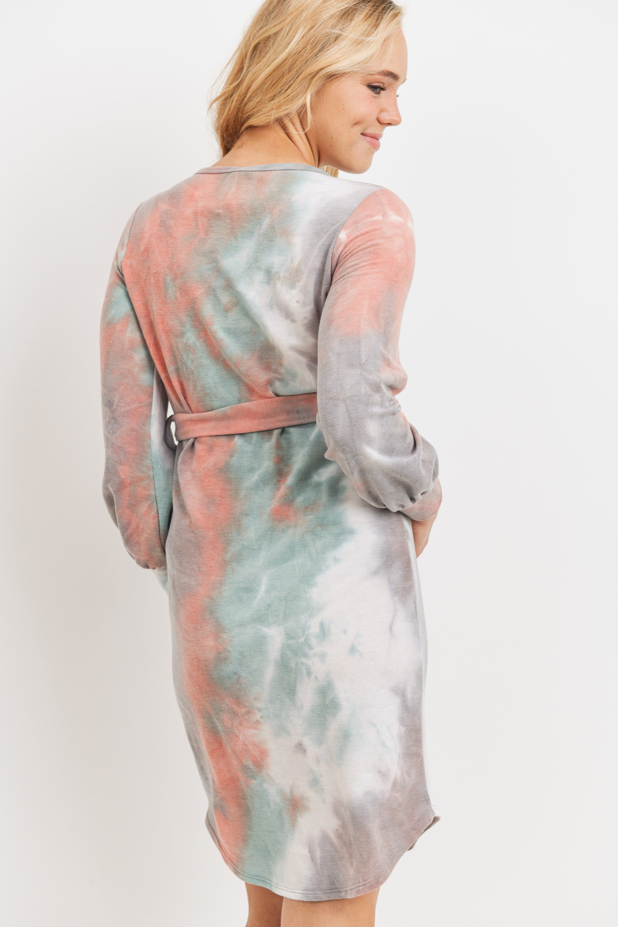 Tie-Dye French Terry Waist Tie Maternity Dress