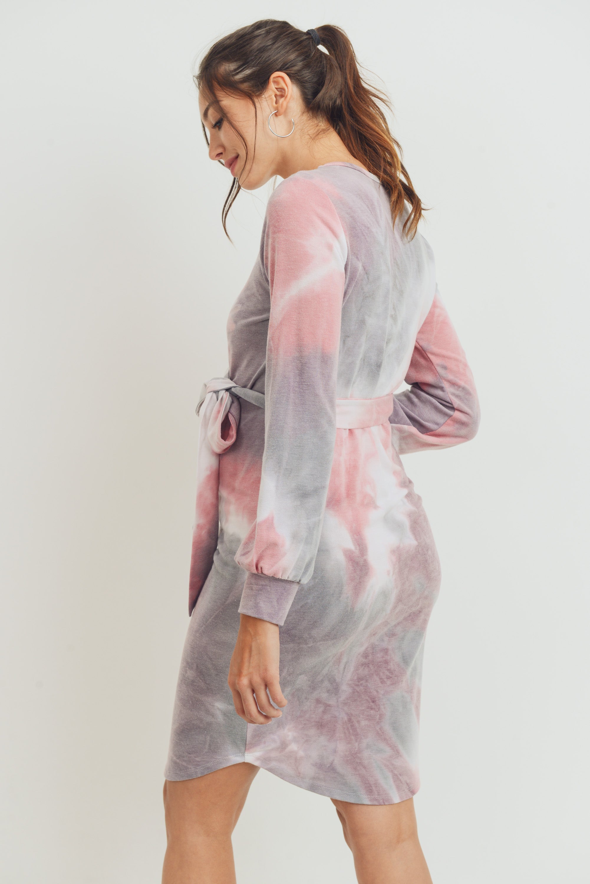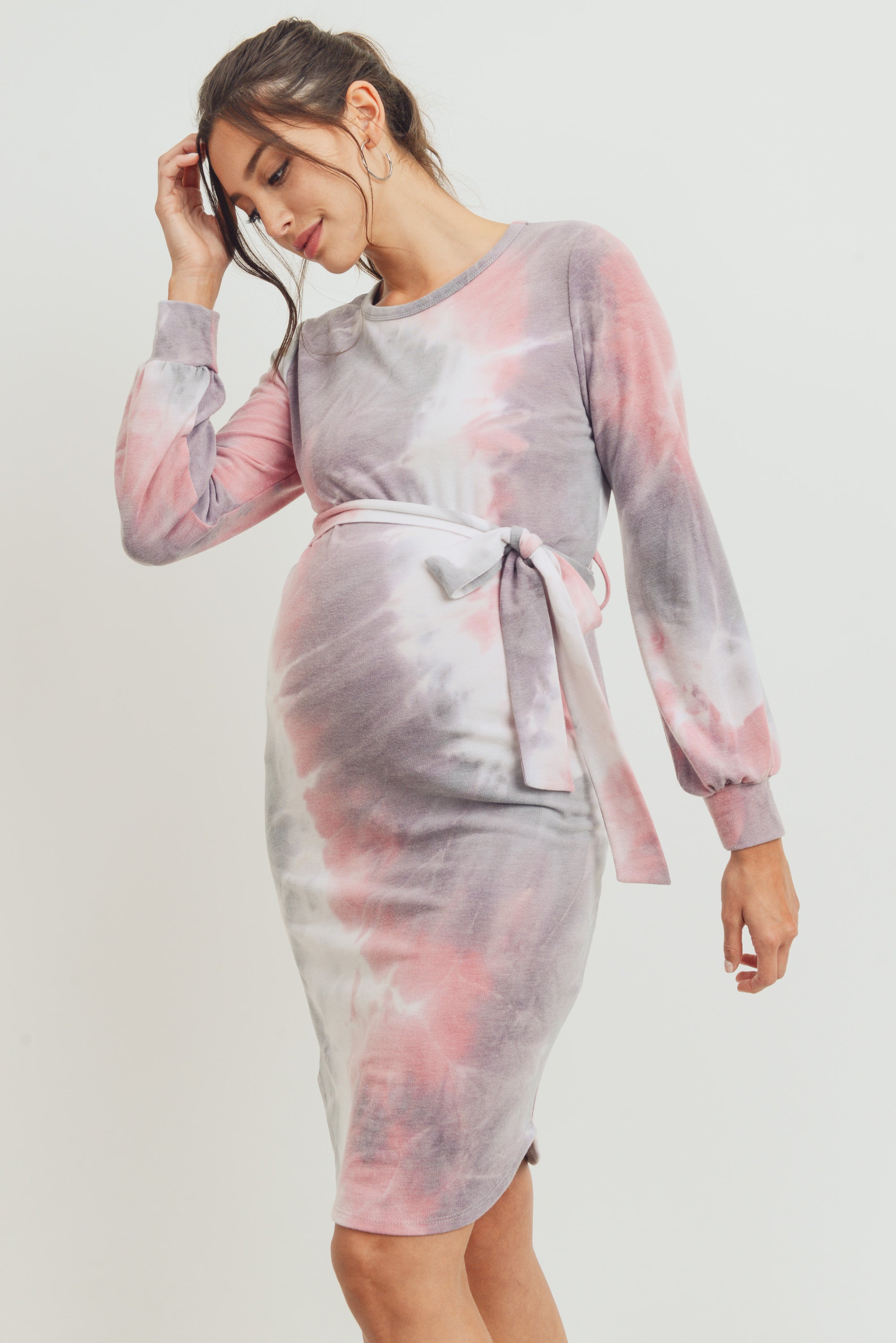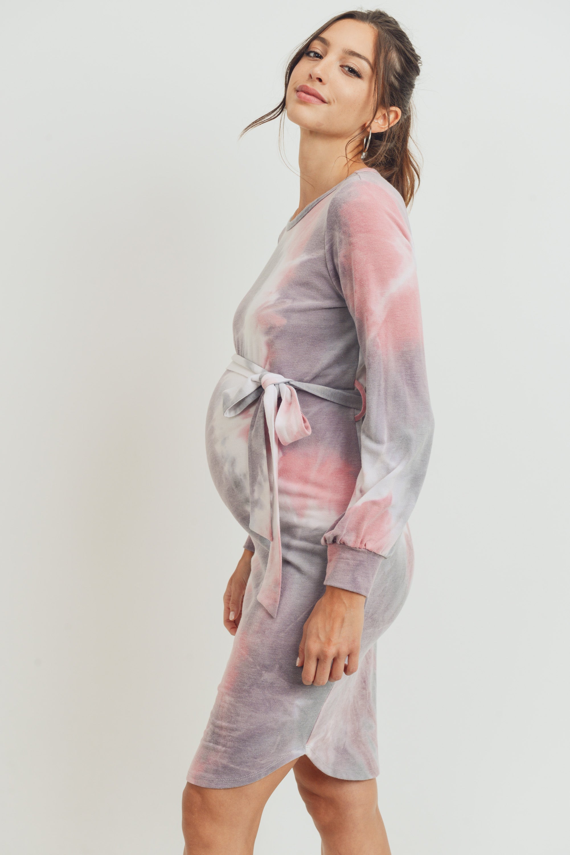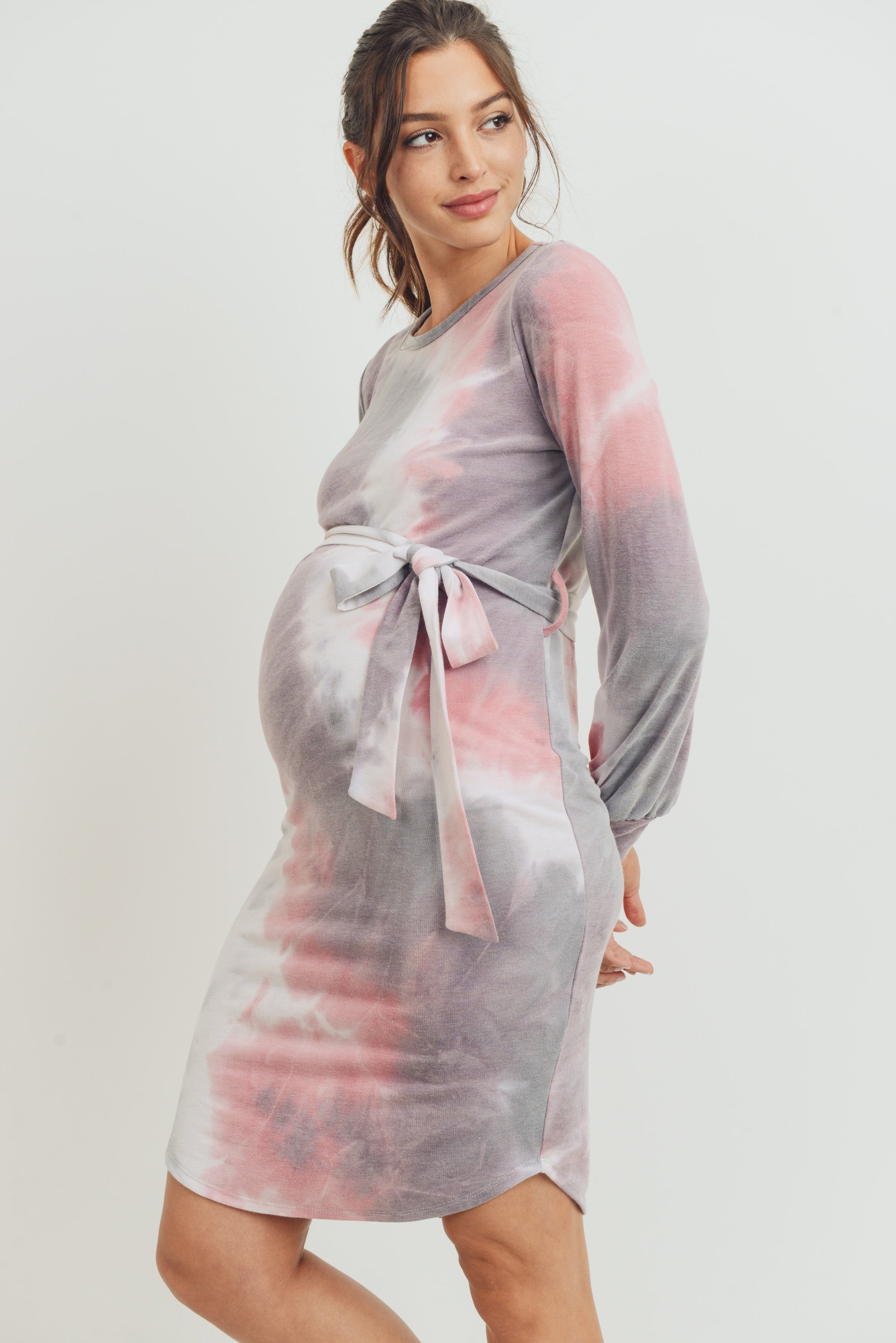 Tie-Dye French Terry Waist Tie Maternity Dress