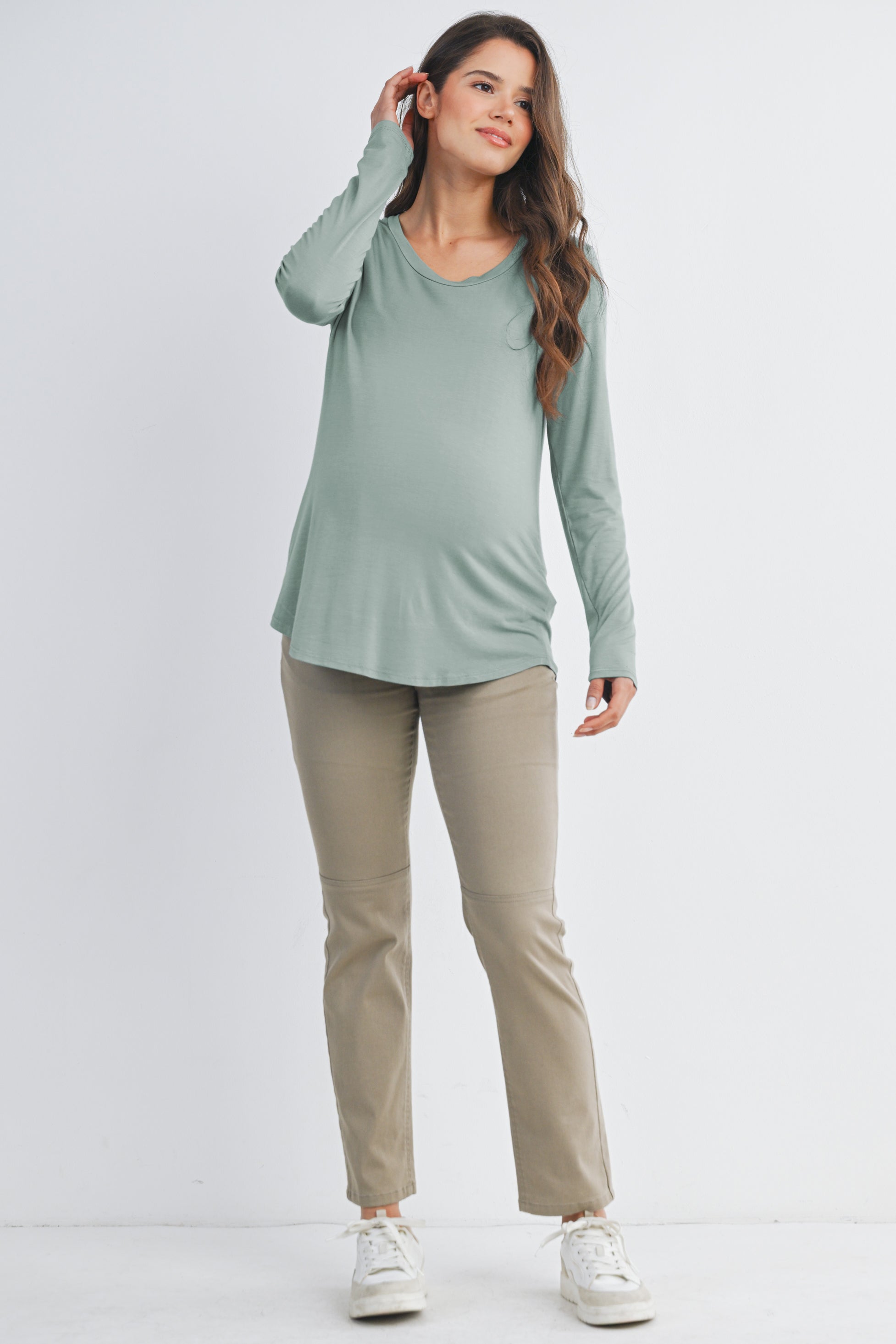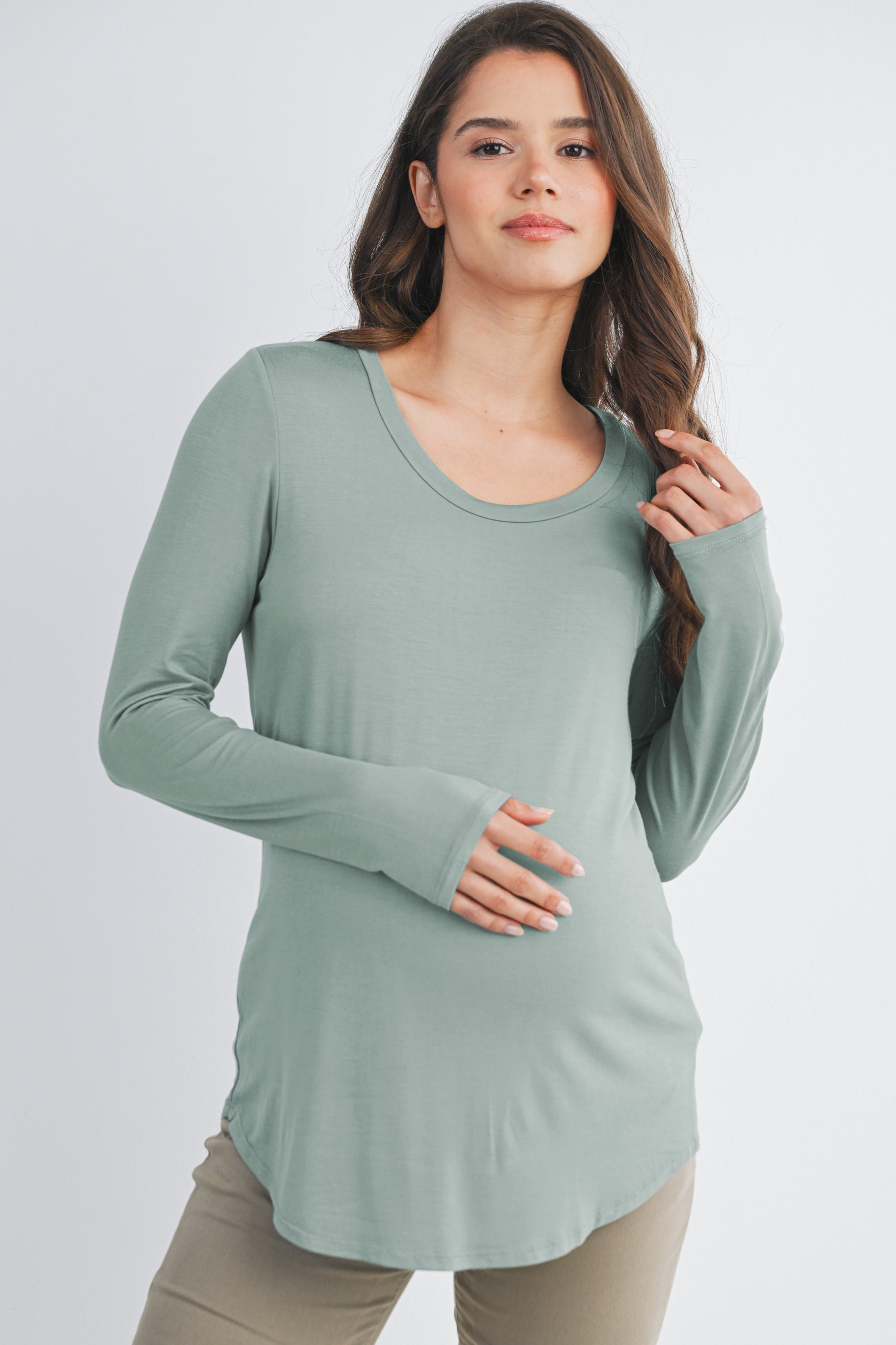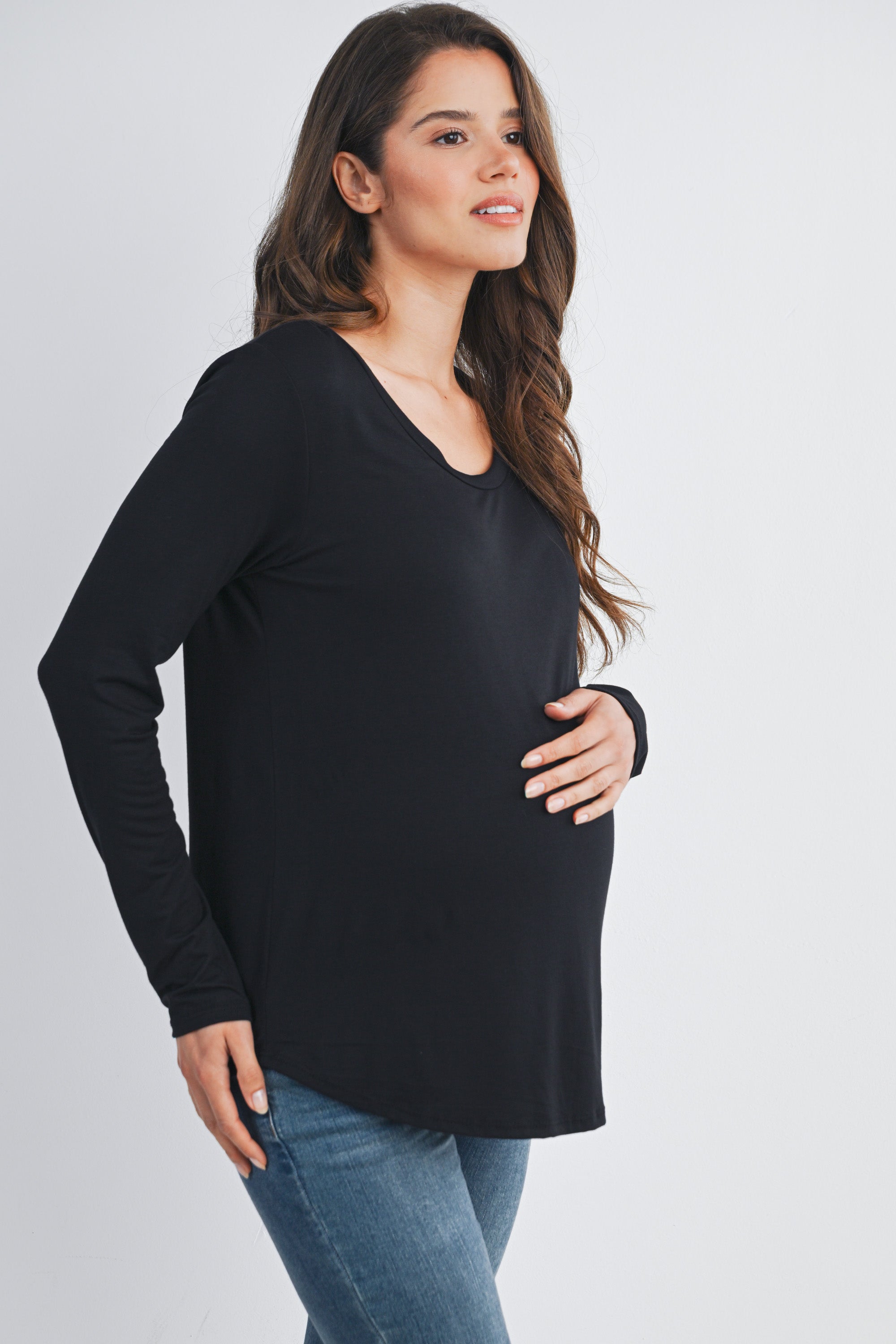 Long Sleeve Scoop Neck Maternity Top Nursing Friendly