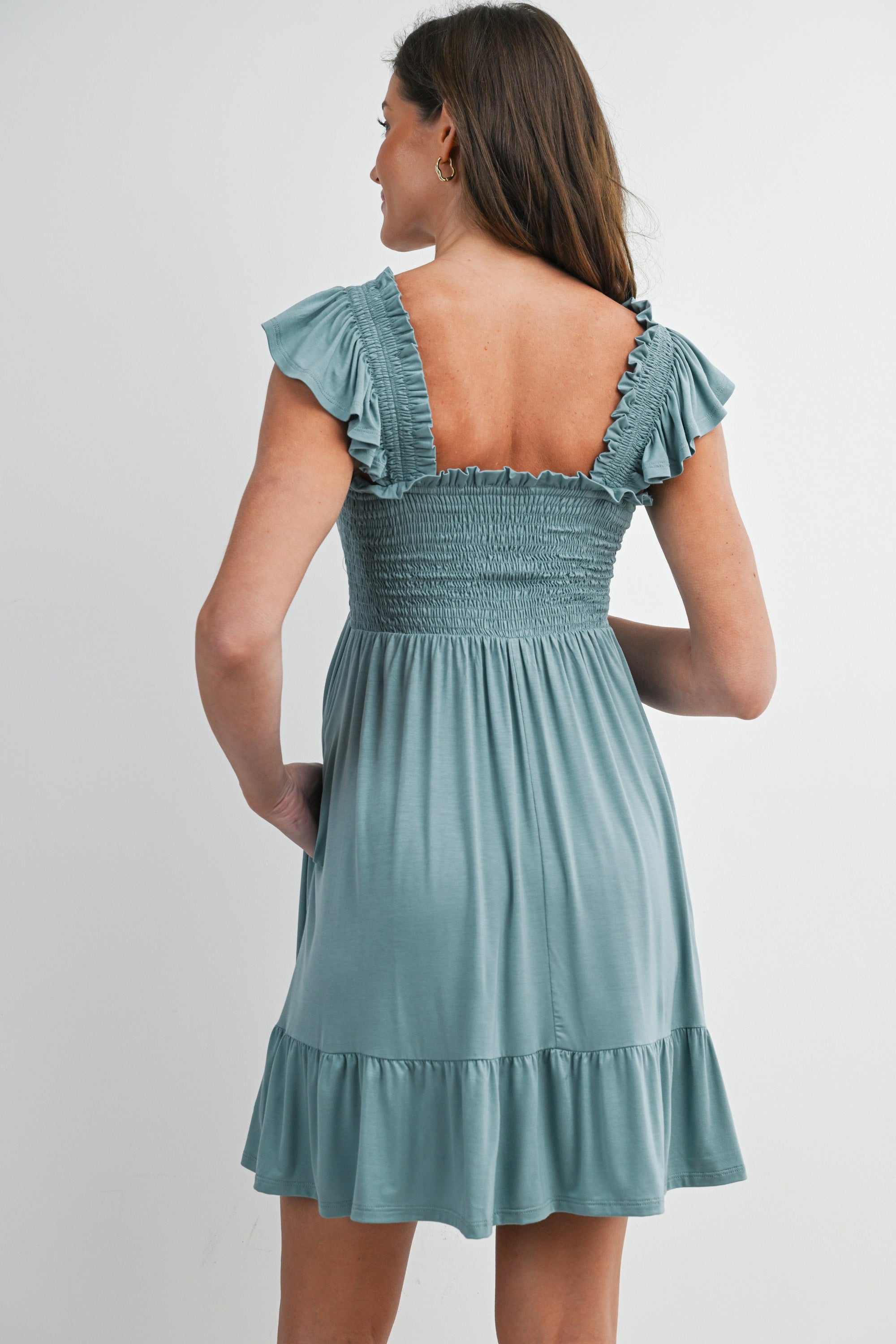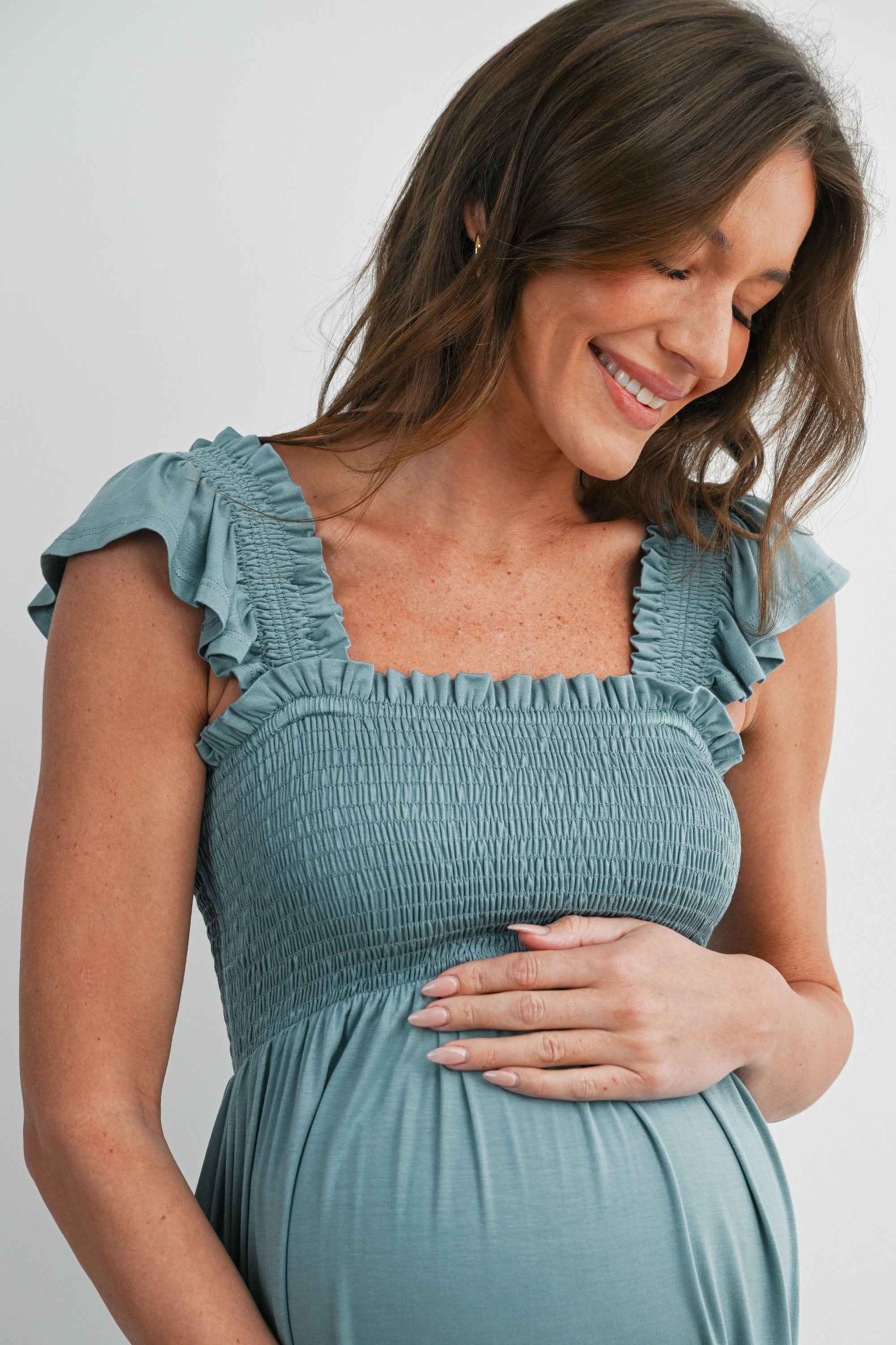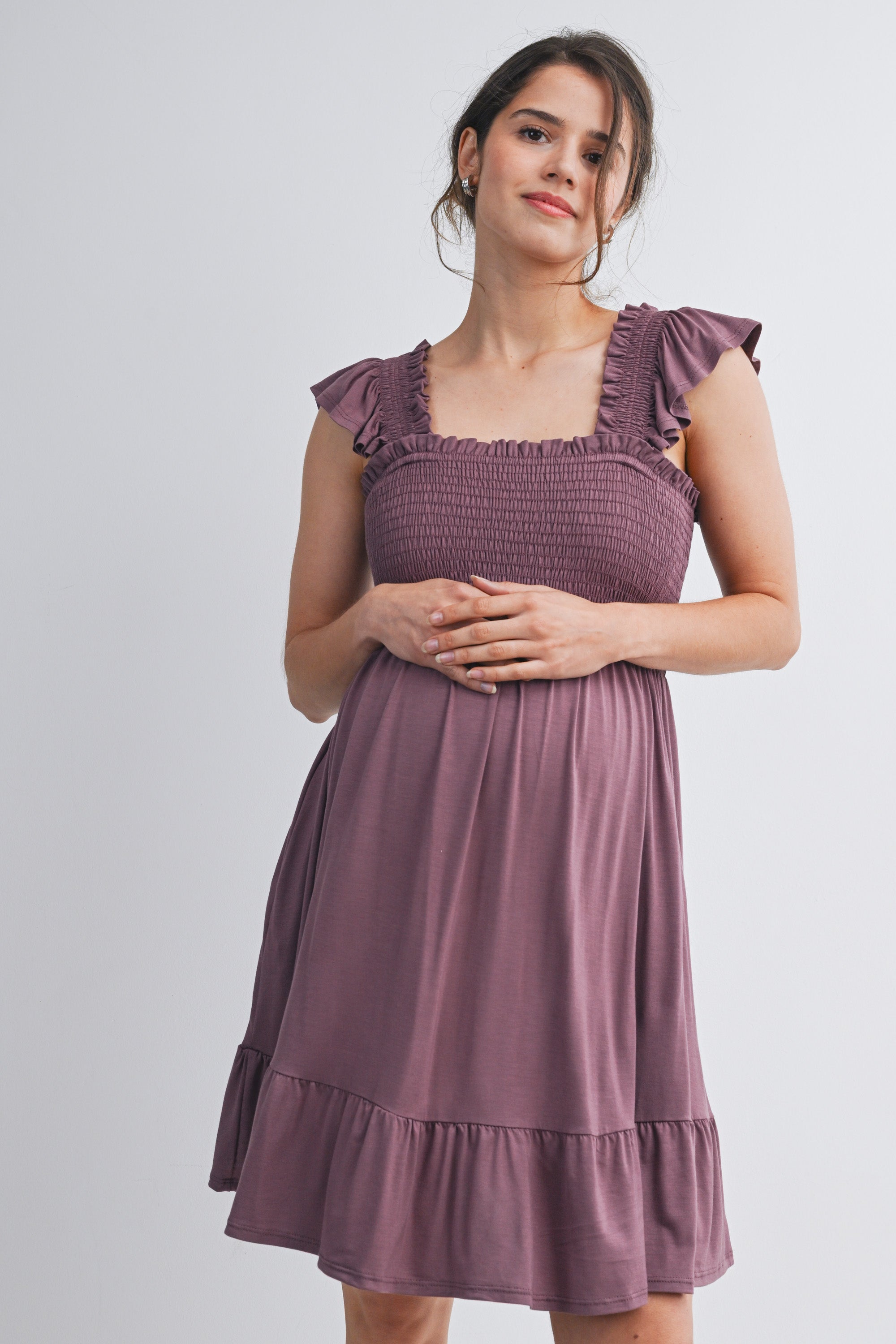 Smocked Empire Waist Maternity Dress with Ruffle Hem