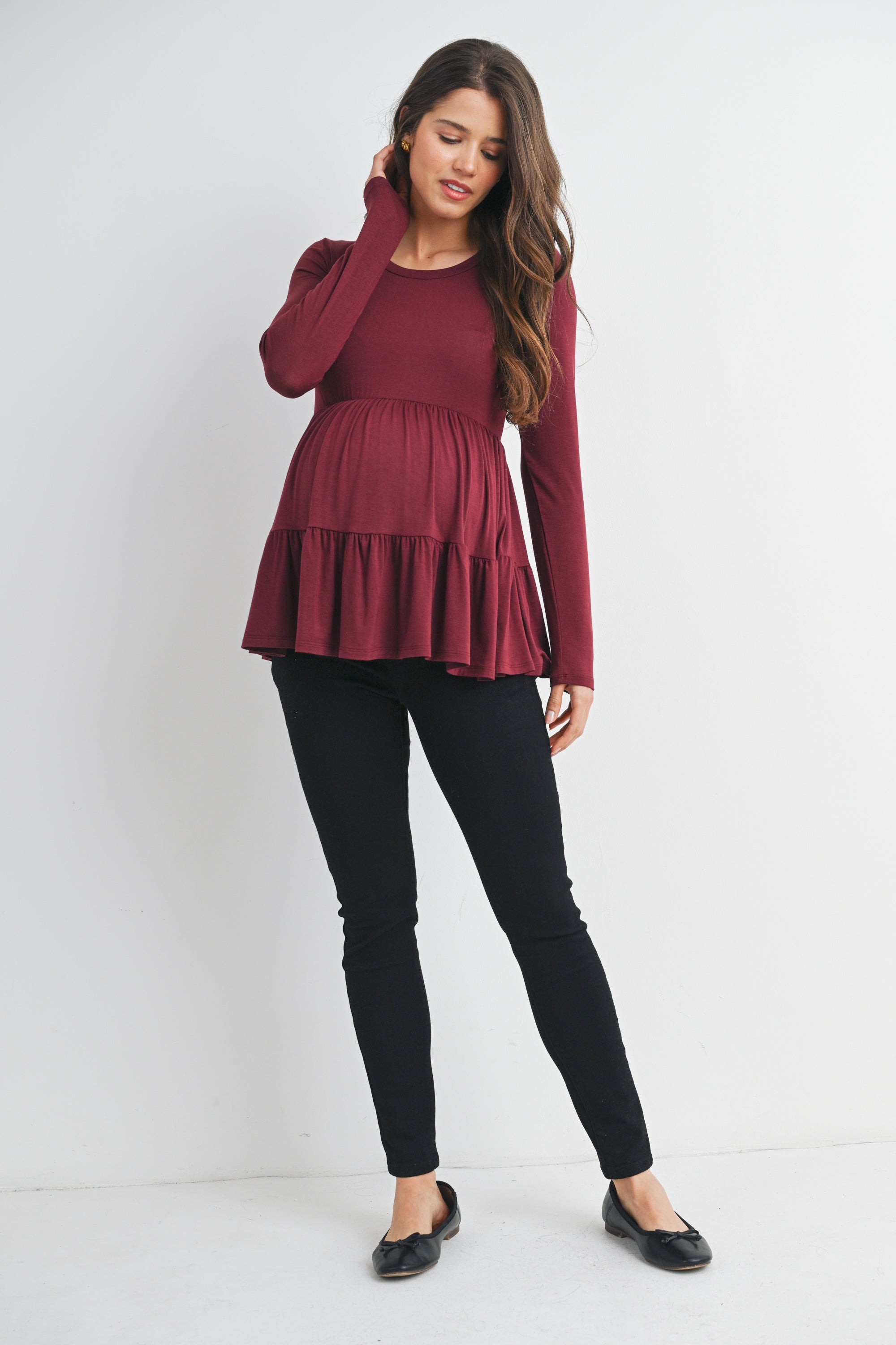 Tiered Long Sleeve Maternity Top